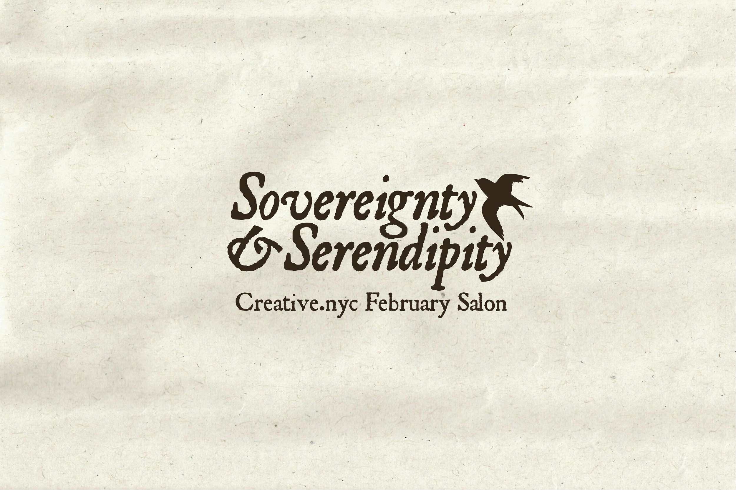 The theme of the Salon was Sovereignty & Serendipity. When creative.nyc’s director Josh Dunn and I were brainstorming what we wanted this event to feel like, we kept coming back to themes of nature and drawing towards texture. Serendipity often makes us feel connected with the world and the greater chain of history, so I created a color palette that was very earthy and used fonts that felt ancient and antique. Meanwhile, sovereignty feels so much bigger than coincidence, bigger than the “butterfly effect,” so I decided to include the image of a bigger winged creature, a swallow, to represent that phenomenon. Swallows often represent good luck and freedom, topics often discussed alongside serendipity.